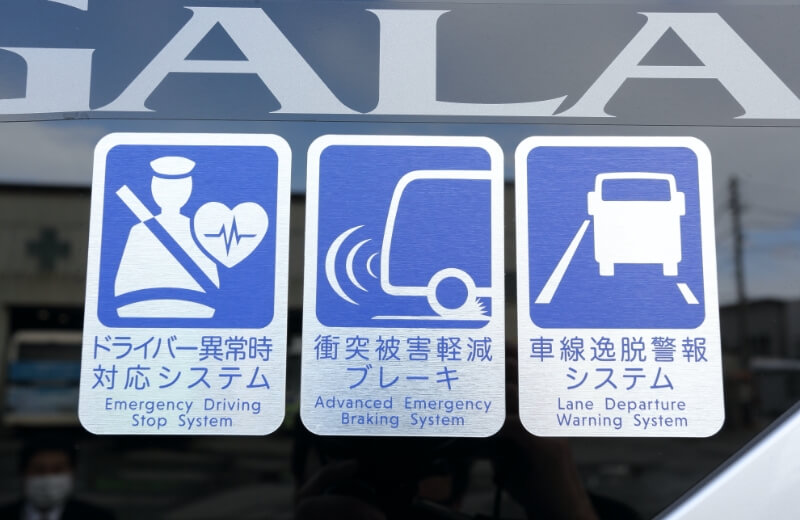 2020年導入した車両には追加してドライバー異常時対応システム/車両安定制御装置が搭載されています。(保有台数7台)